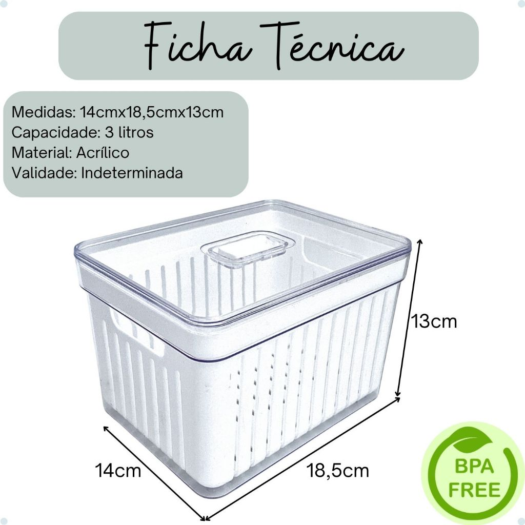 Com opções de 1,4L – 2,8L – 3,8L, você escolhe o tamanho ideal para cada alimento: folhas, frutas, verduras, legumes, snacks, frios e muito mais.