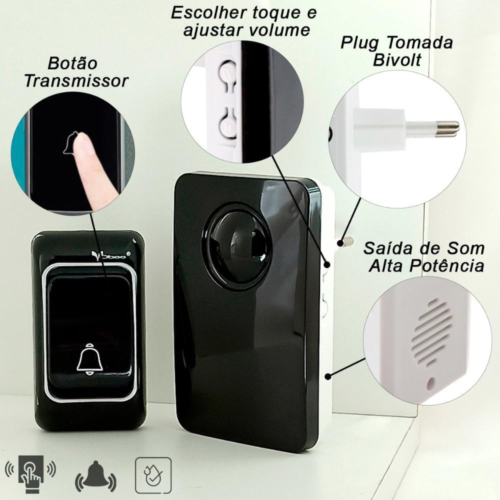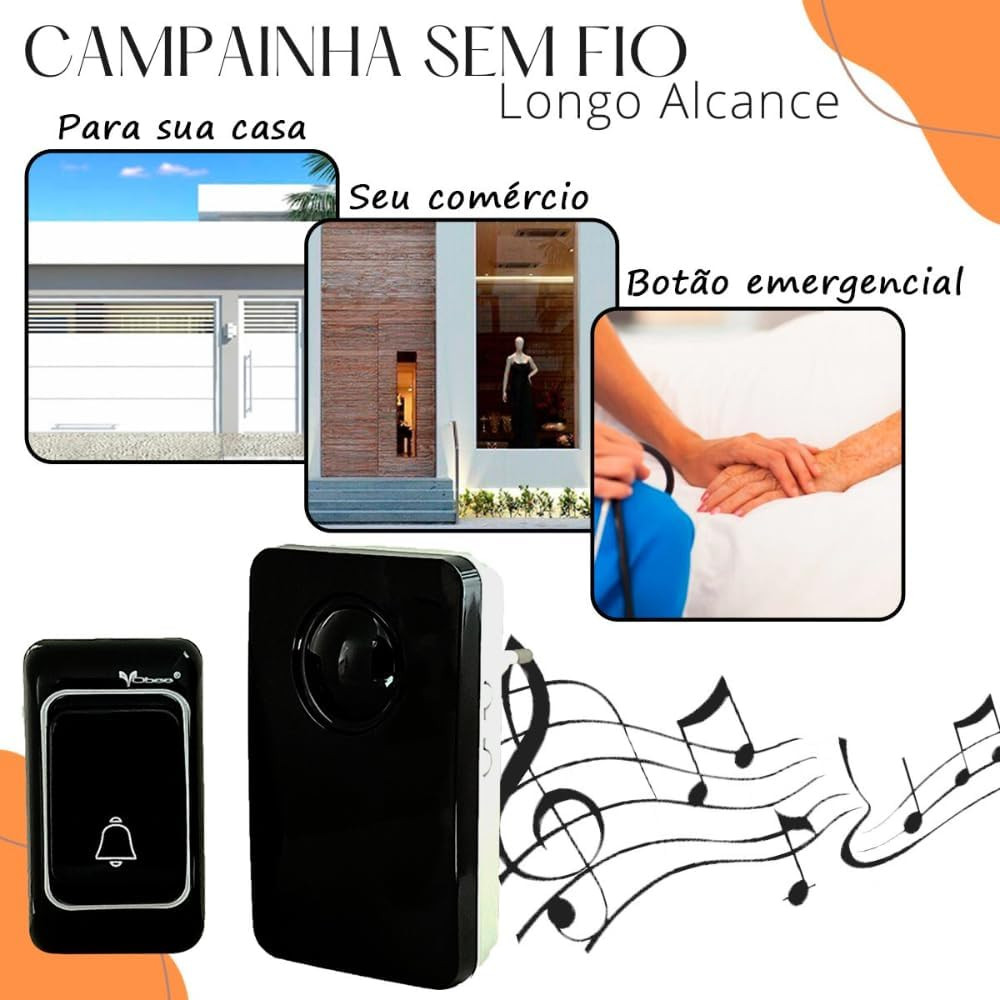 - Campanhia sem fio com vários toques agradáveis para sua escolha;