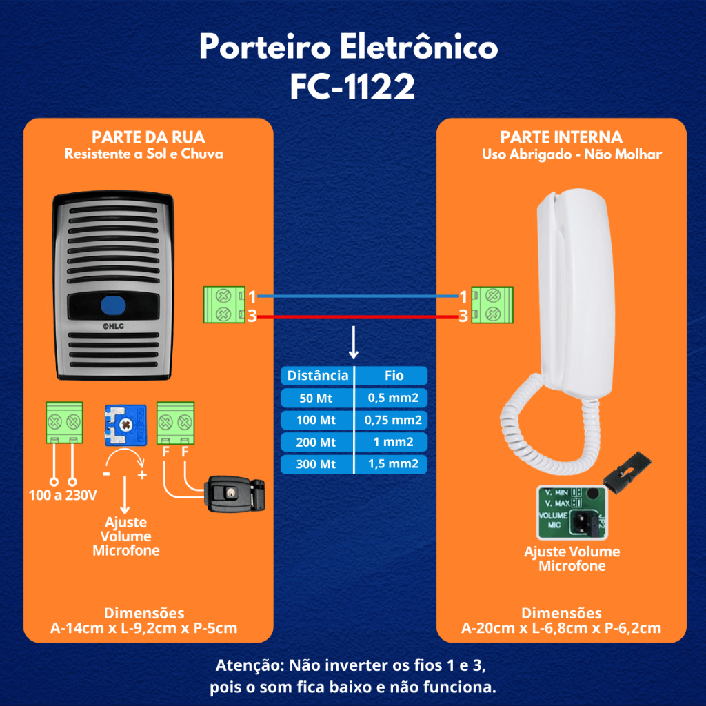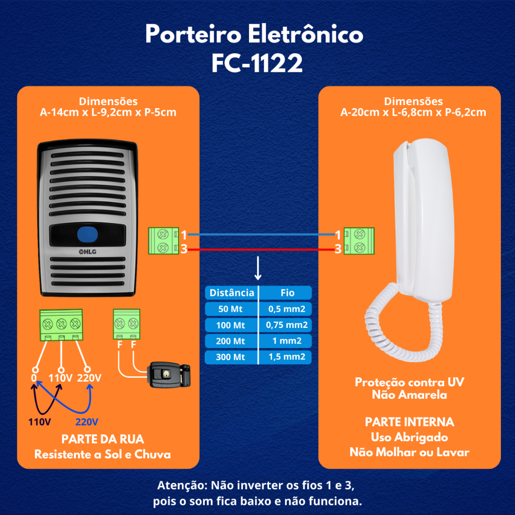 - Entrada para 127 V e 220 V - Alimentação elétrica ligada no Porteiro (parte do lado da rua).